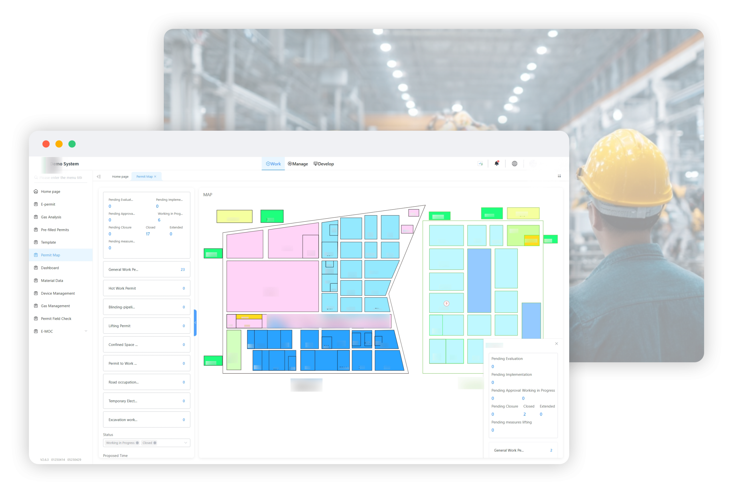 8 special permit-to-work slips realize digitalization, visualization and standardization Implant the national standard, integrate the advanced experience of the industry, and optimize the ePermit process Improve the level of safety management and the efficiency of work permit approval.